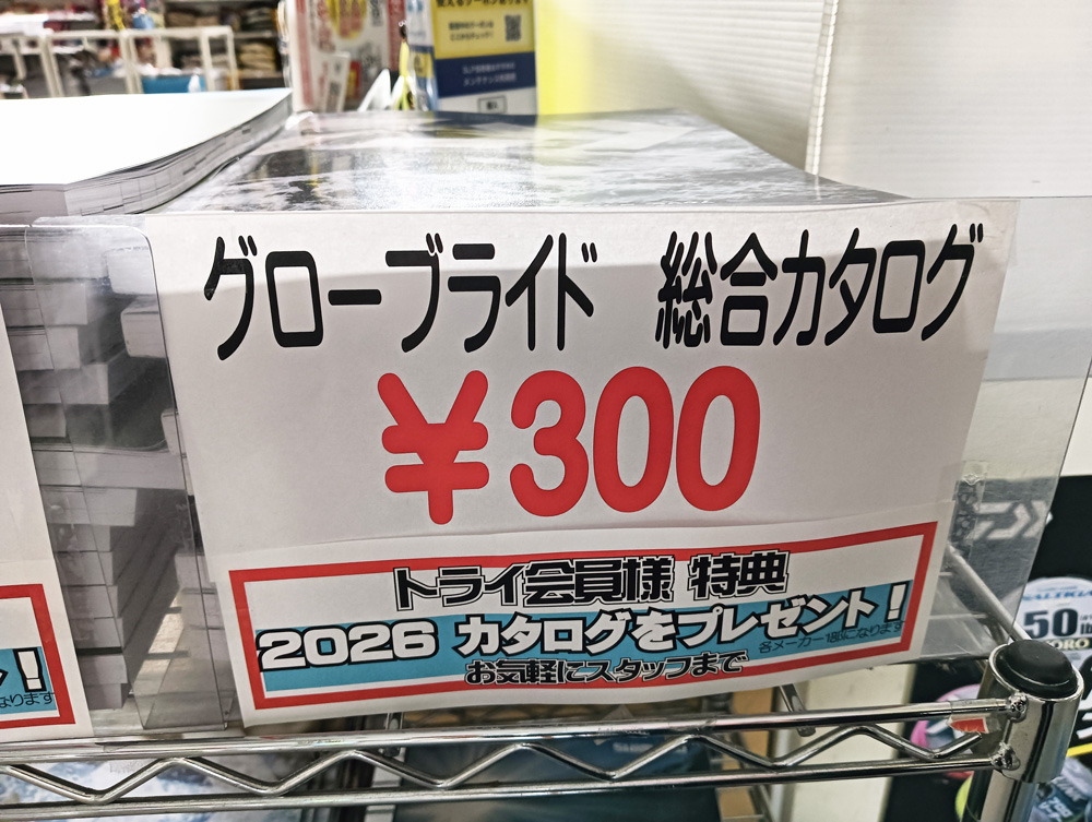 現在フィッシングトライ店舗では、シマノ・グローブライトの最新カタログを店頭にて販売しております。